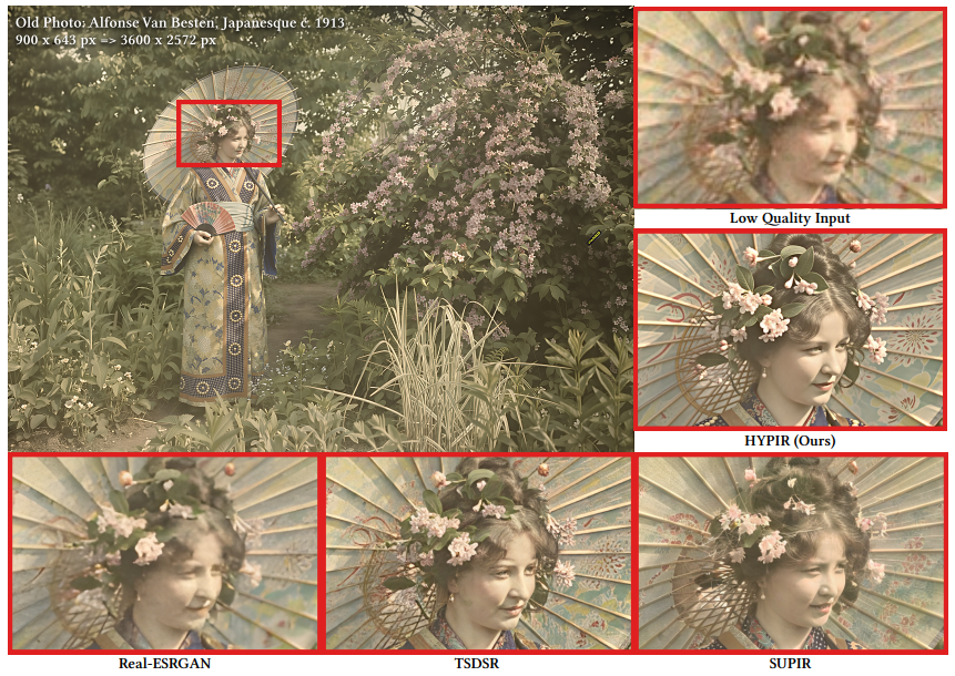 HYPIR不仅展示了图像修复技术上的创新性,也体现了对实际应用需求的理解。顺利获得打破传统思维定式,该技术在文化传承与保护、影视修复、高分辨率图像生成等领域给予了切实可行的解决方案,为图像复原技术的开展注入了新的活力。