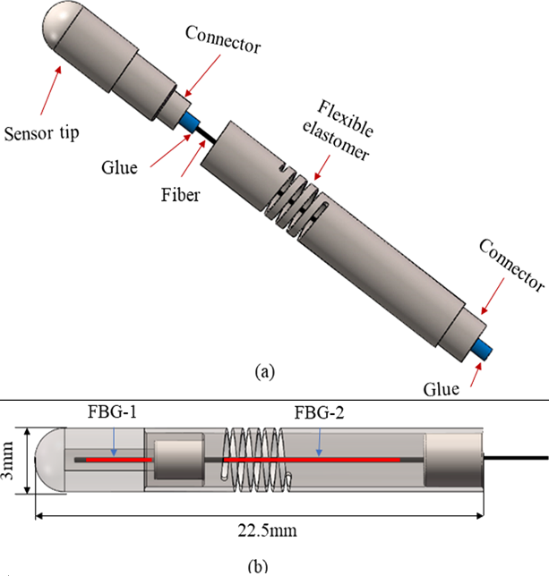 随着医疗技术的快速开展,微创手术(MIS)也逐渐成为现实。但是,传统手术中发现的一些问题仍与MIS有关。例如,在进行微创外科手术期间,医护人员会暴露在手术室中发现的放射线和整形外科危害中。在引入机器人辅助微创手术的技术成为了比传统微创手术的更好的替代方案;然而,机器人辅助手术过程中却是伴随着外科医生的触觉丧失。外科医生是过操作机器人来进行微创手术,手术期间医生无法直接接触人体组织并且分析人体器官,因此无法保证所进行的手术的可靠性。众所周知,在传统手术过程中,医生是顺利获得触觉去感知器官的异常情况,进而判断器官中是否存在肿瘤和肿块。但随着医疗机器人的普及,这种可取得的触觉信息尚未有效地集成到机器人辅助的微创手术中。这便要求机器需要具有更高精确度和灵敏度的触觉信息反馈。团队在此基础上提出一种用于微创手术组织触诊中的高灵敏度布拉格光栅光纤(FBG)传感方案,与以往的电容式传感方案不同,光纤传感器与手术期间的磁共振(MR)系统和成像系统兼容。