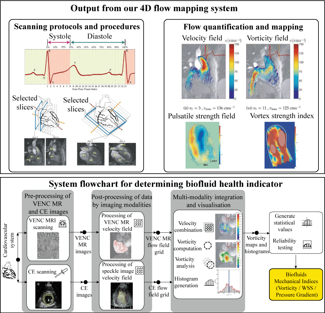 我们得出的心脏的血流特性,基于相位对比度磁共振成像或造影超声心动图。然后,基于生物流体场和派生的流动参数,我们将实现一个心内室可视化系统加上血流动力学指标为流动检查,具体流程如如图5所示。
