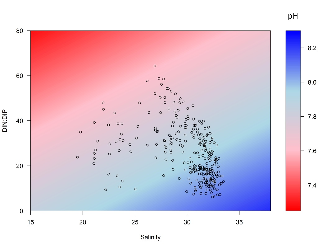 3:富营养化状态下的pH预测(单位: pH·unit for pH; ppt for salinity)