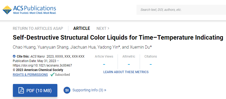 ACS Nano | 用于医药冷链可视化监测的结构色液体时间温度指示器