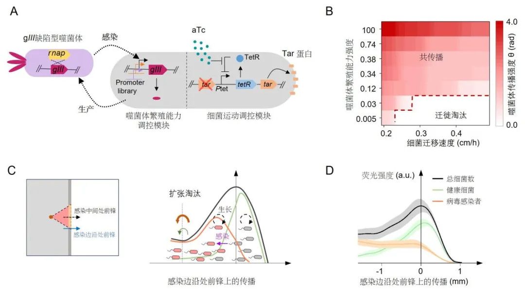 巧妙构建可定量、调控的细菌-噬菌体共迁徙实验系统