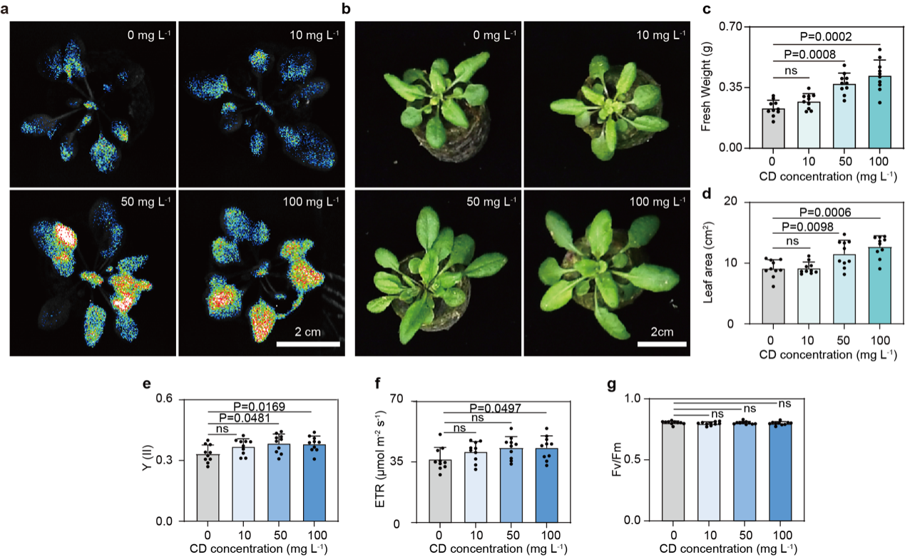 图3:碳量子点材料提高了拟南芥的光合作用效率