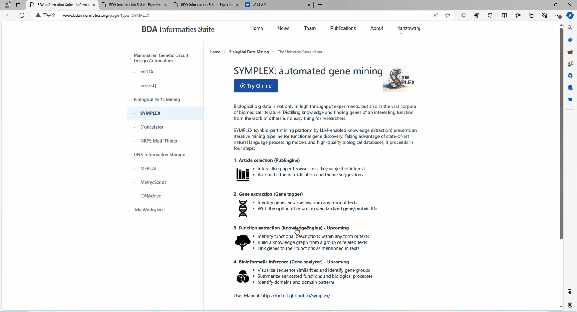 现在,SYMPLEX在线交互式平台已上线供研究人员免费使用(http://bdainformatics.org/page?type=SYMPLEX)(图4)。平台采用模块化设计,给予三个核心功能:
