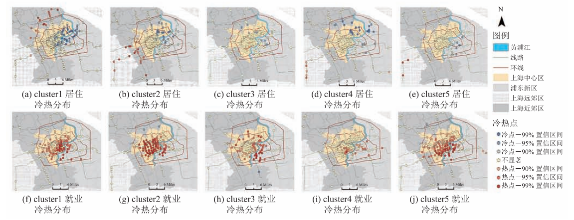 摘要:针对现在通勤群体的划分方法较少考虑通勤行程的时间陆续在性特征的问题,该文基于上海市一周的地铁刷卡数据,构建了通勤人群职住识别模型,并定义了一种通勤行程时间相似度计算方法,然后提取特征对通勤群体进行层次聚类,并利用热点分析模型进行空间分析和可视化,探究通勤人群的时空规律性及上海市的职住空间分布特征。结果表明:(1)就业单中心模式明显,不同簇的就业热点均分布在市中心,居住点呈“西热东冷”的空间组织特征。(2)主流通勤时段为 7:00-8:30 17:00-19:00,近半数通勤人群在早主流时段通勤。(3)不同通勤类型的出行时间特征总体上与其职住热点分布一致。该文提出的研究方法揭示了通勤人群的出行时间规律与其职住热点空间分布具有较强的关联性,可为城市运行管理和城市规划给予参考信息。